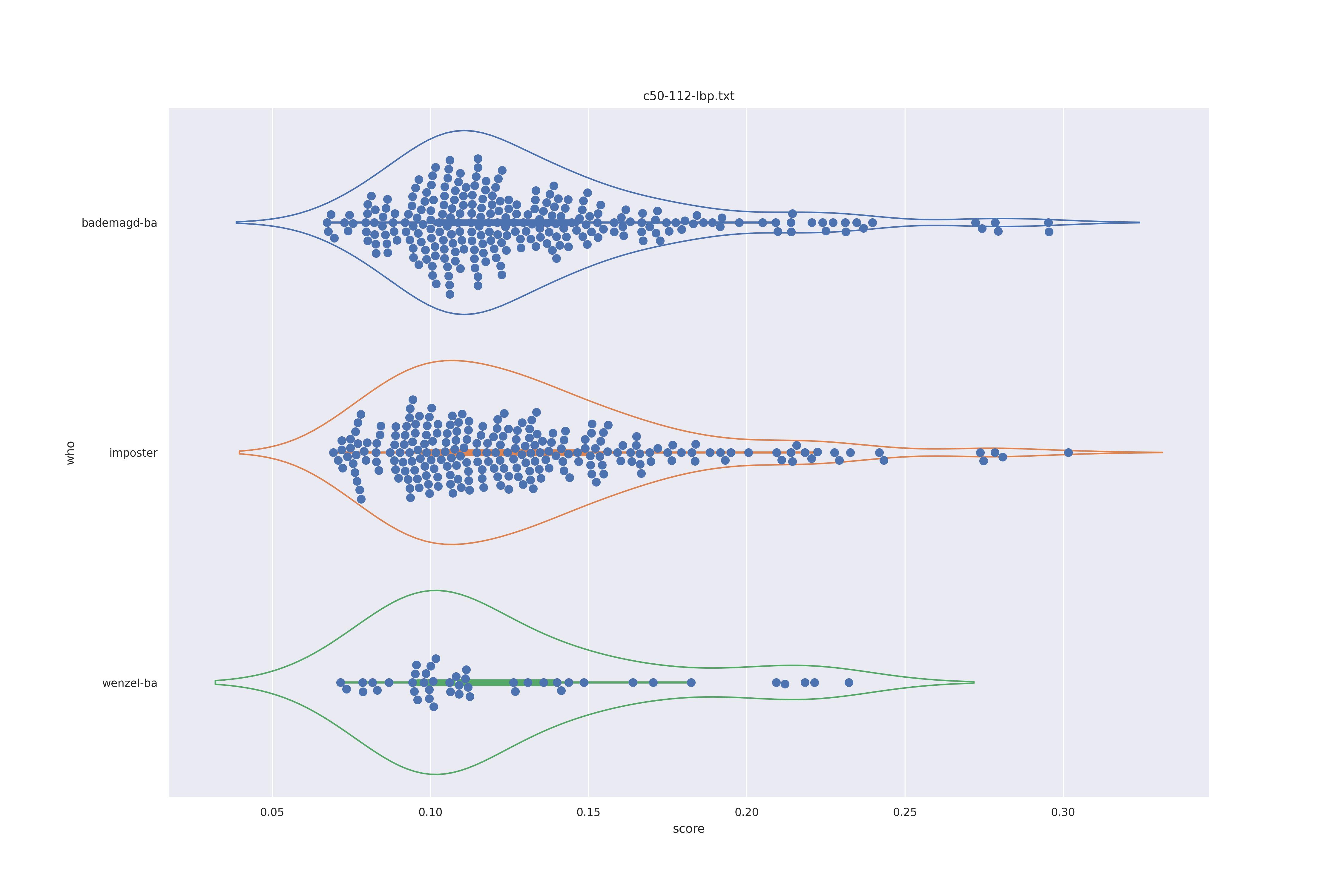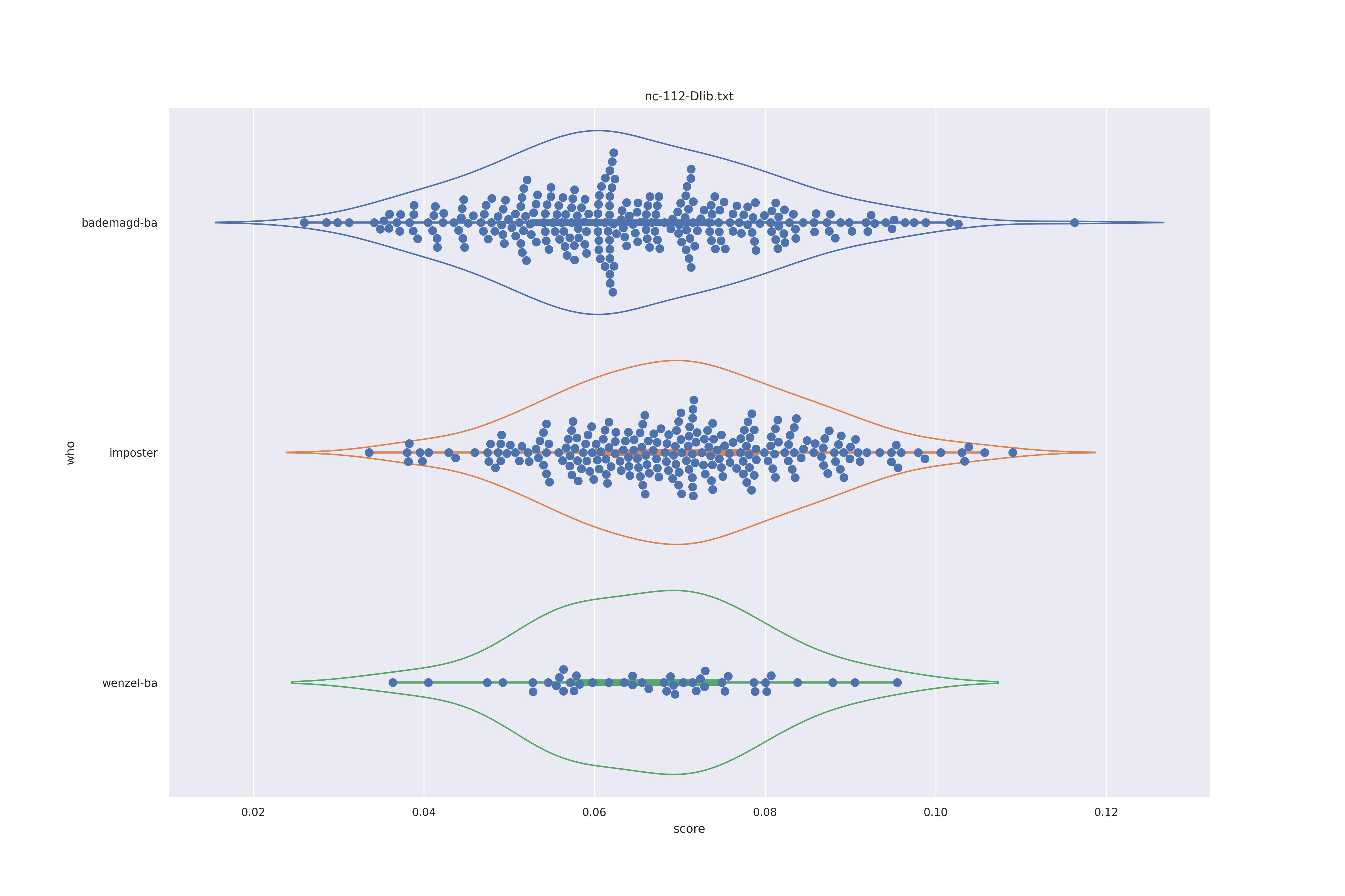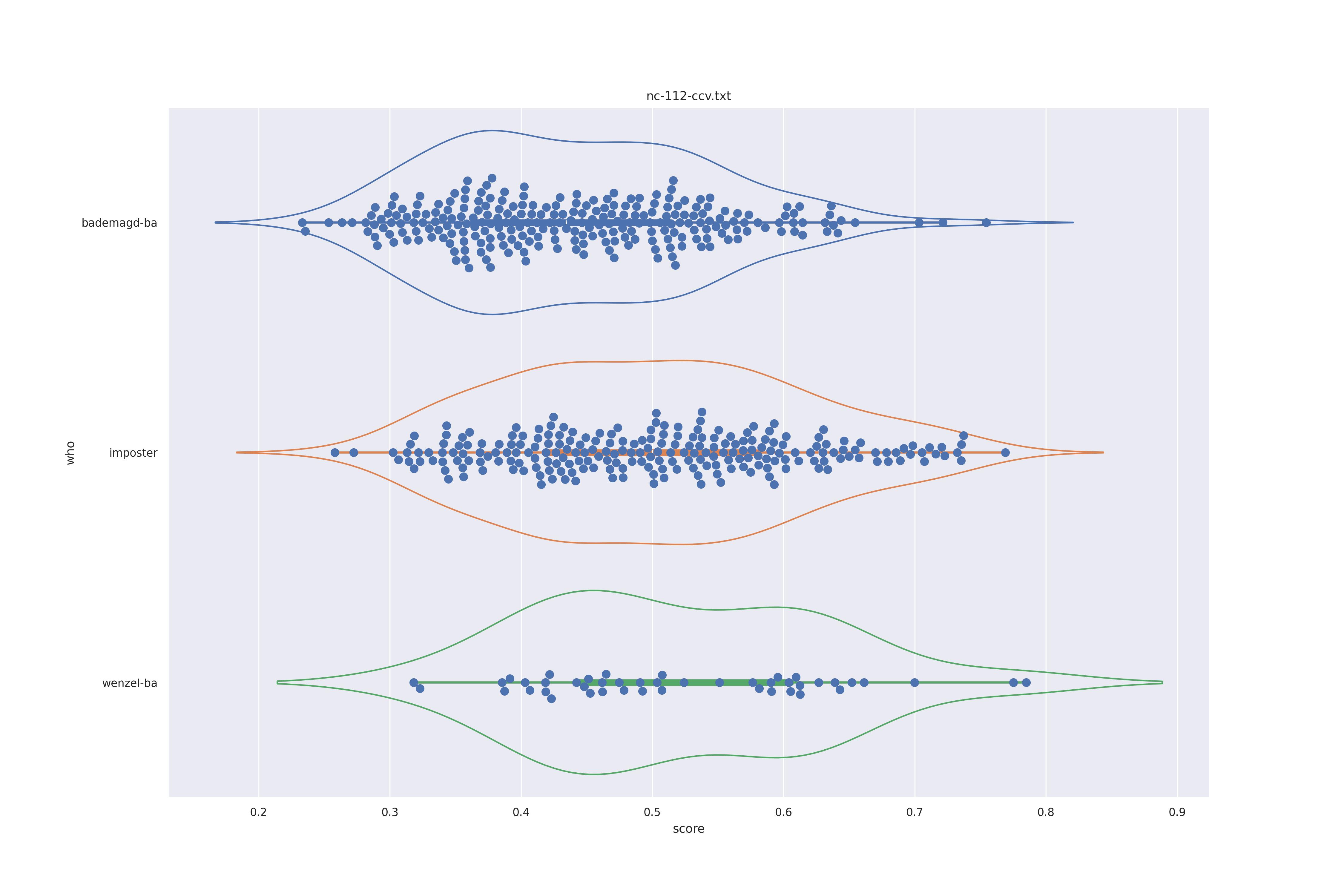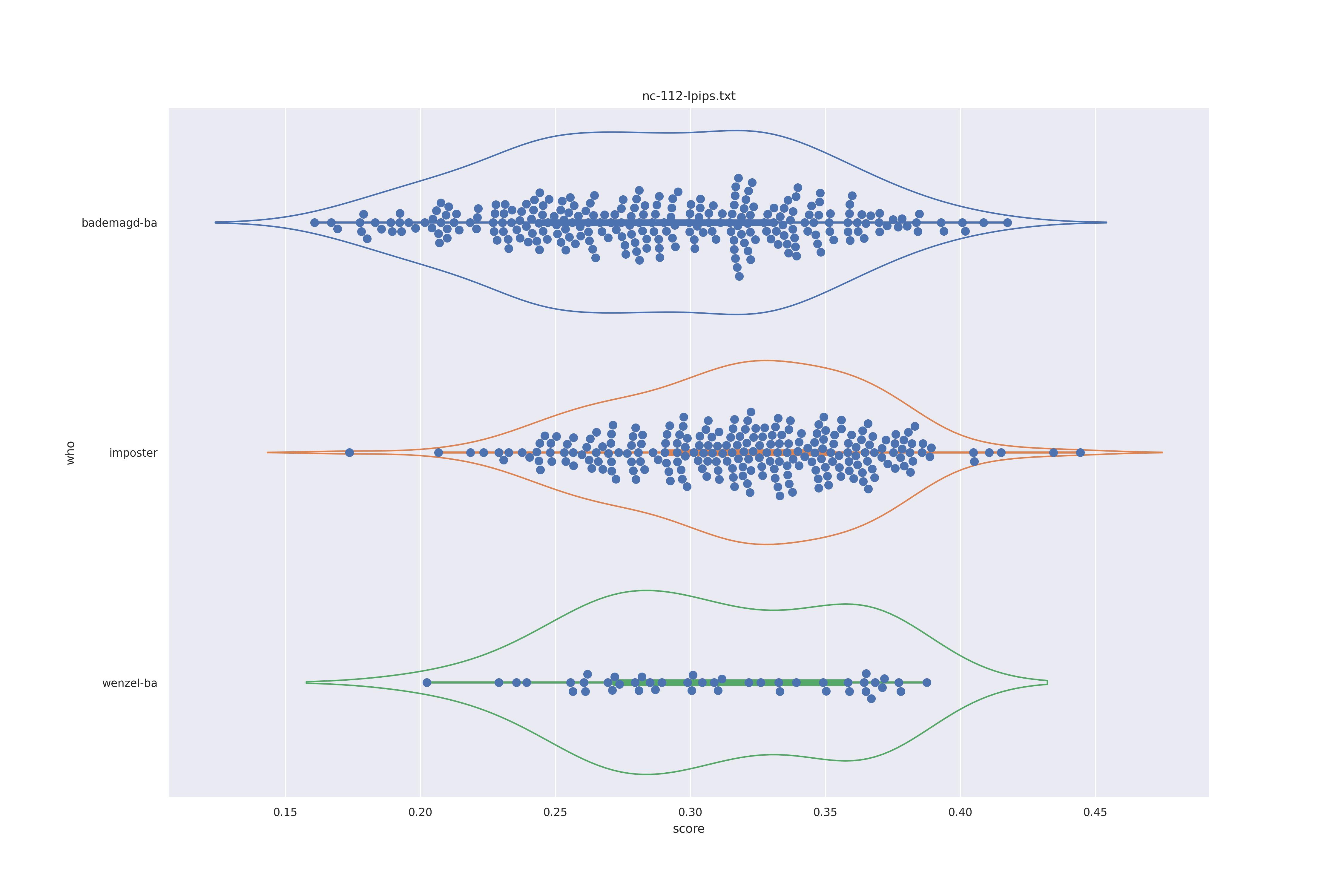 The display is bademagd on top (blue), then imposter comparisons (bademagd vs. wenzel in orange) and then wenzel at the b ottom (green).