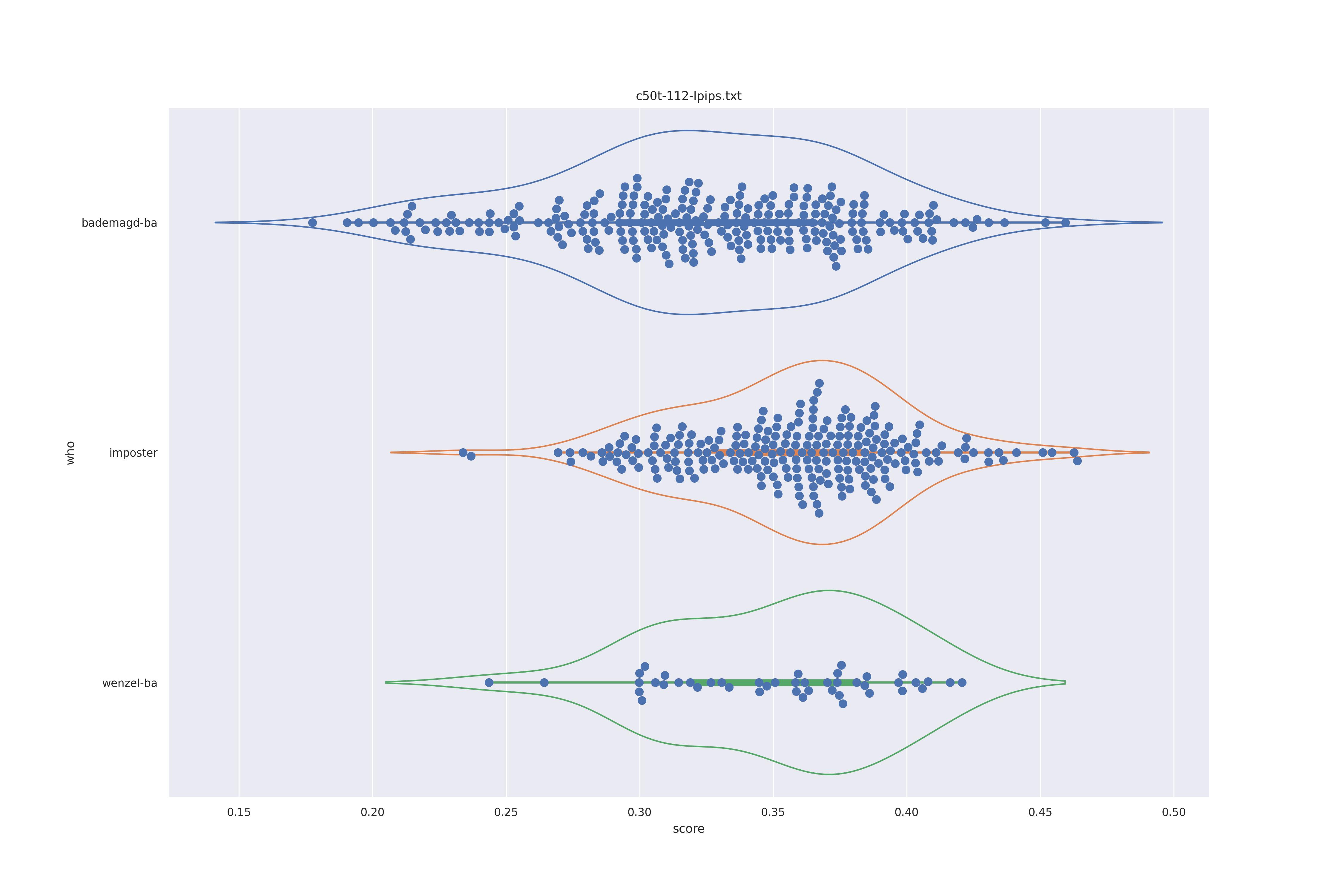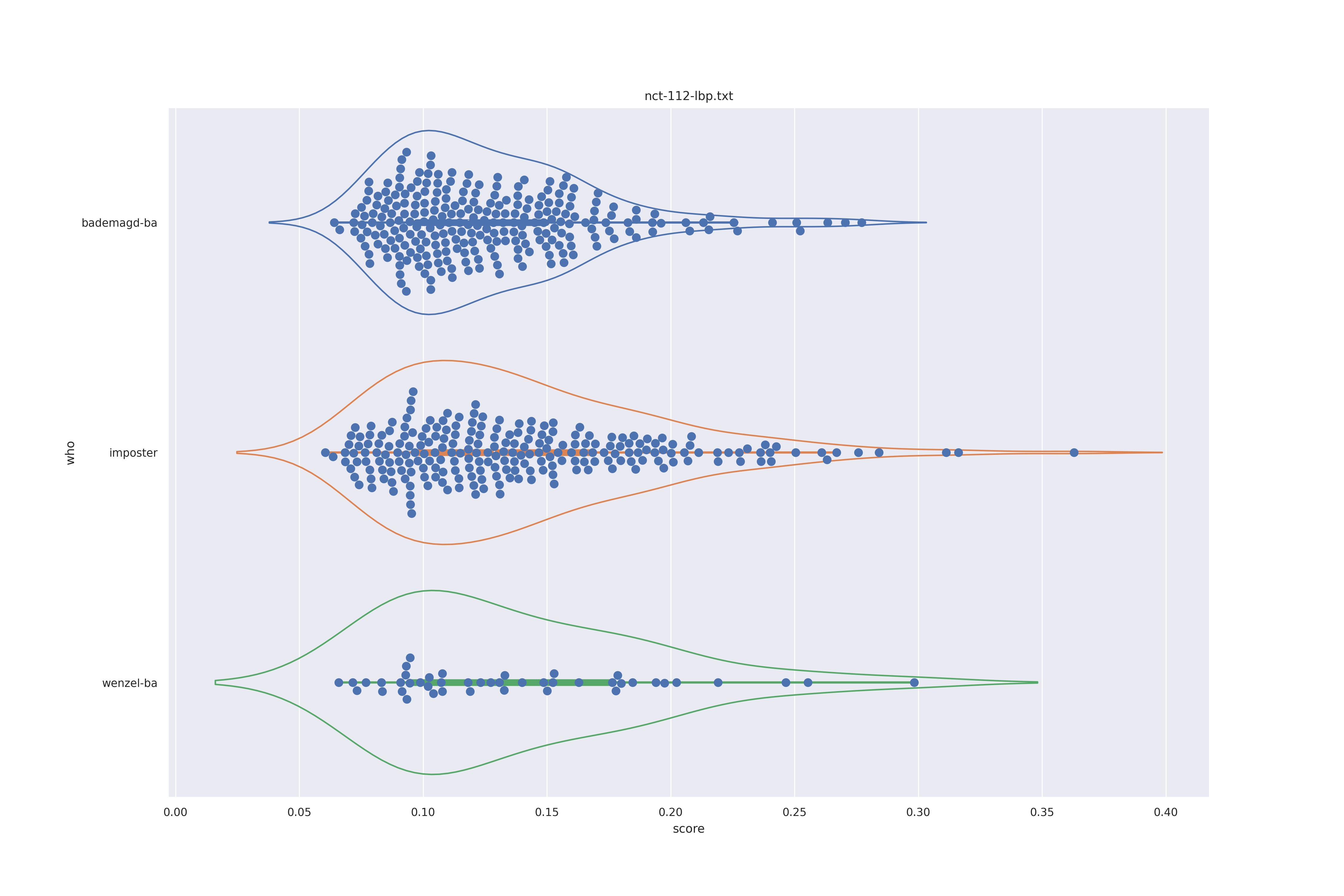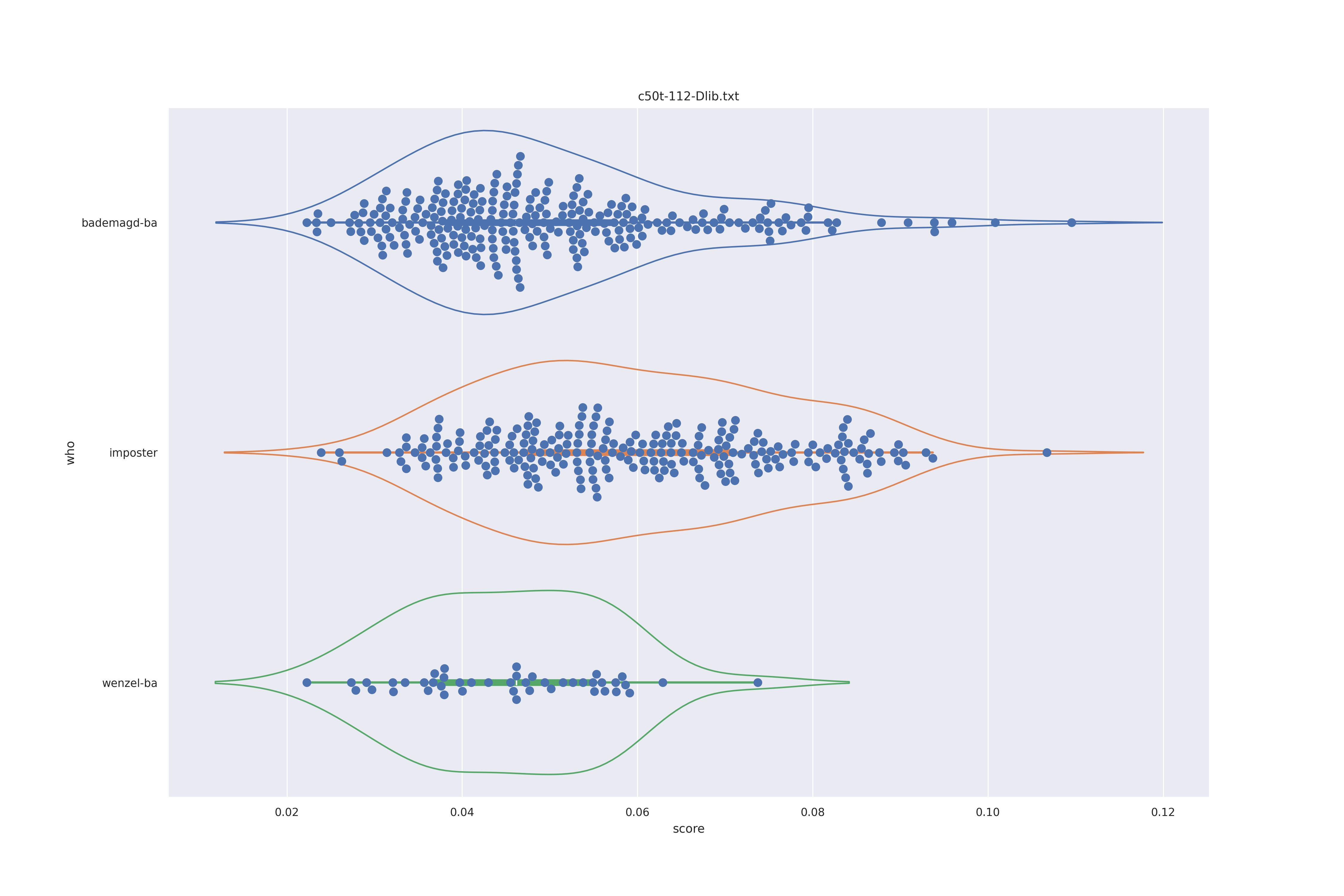 The display is bademagd on top (blue), then imposter comparisons (bademagd vs. wenzel in orange) and then wenzel at the b ottom (green).