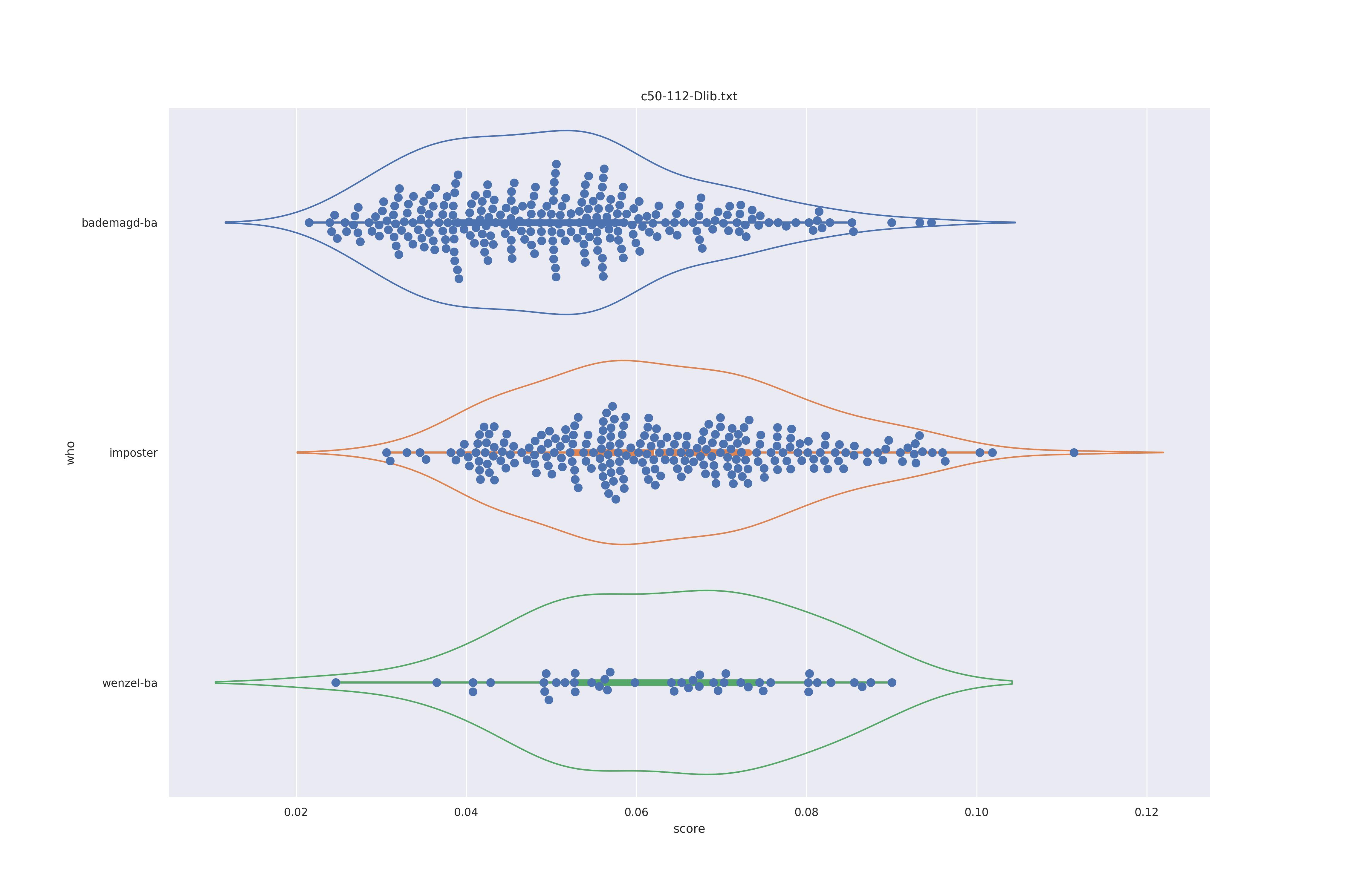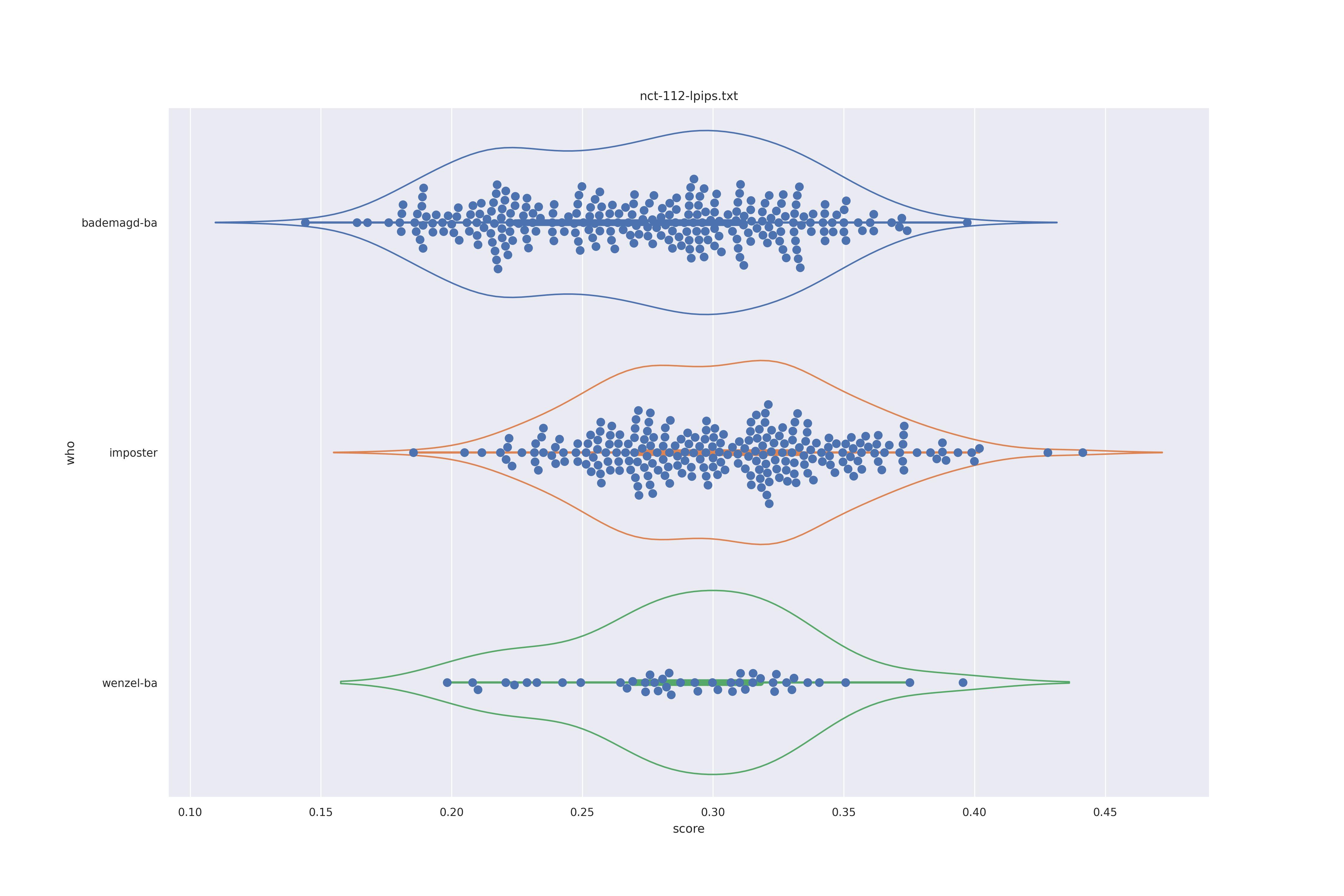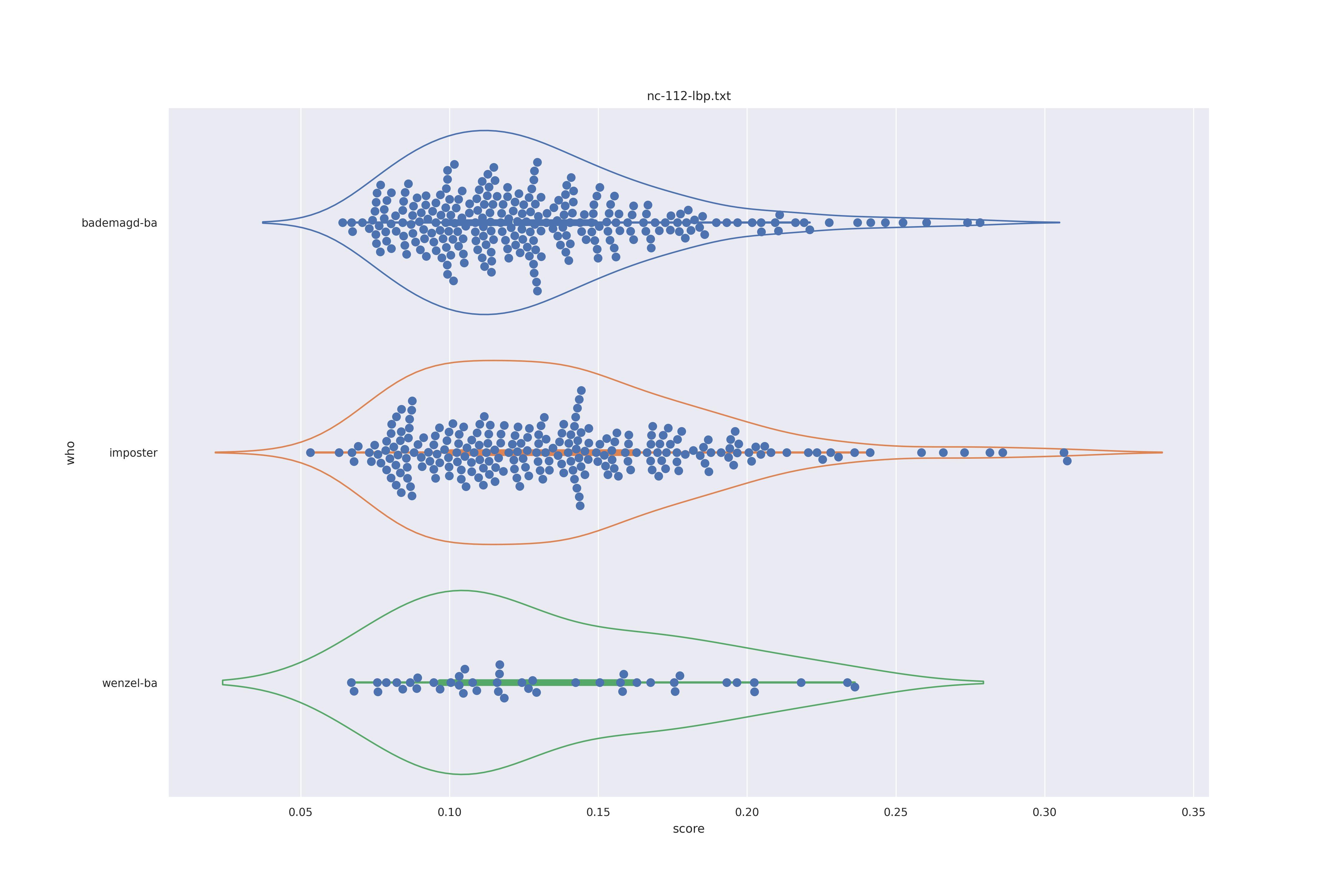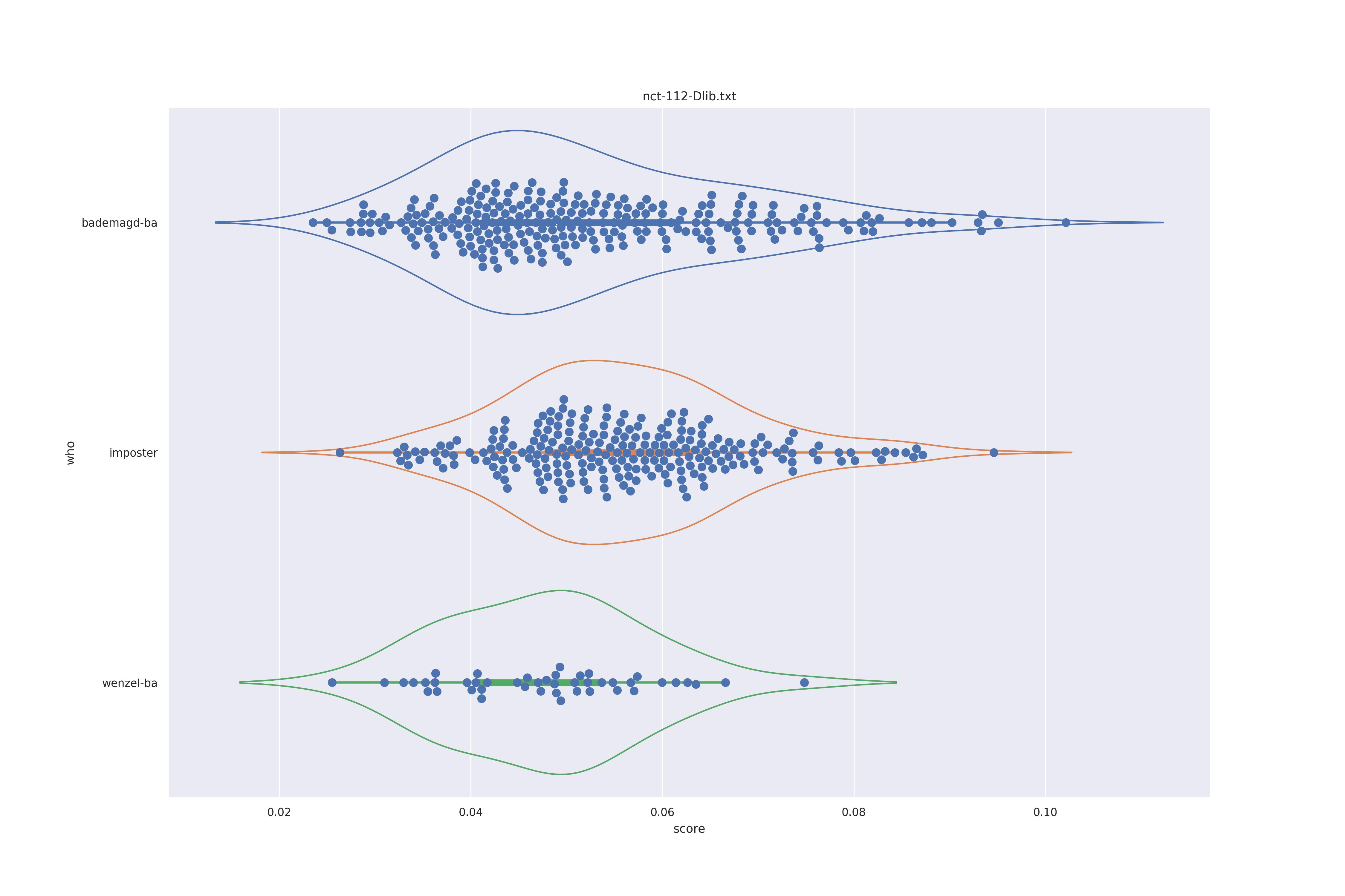 The display is bademagd on top (blue), then imposter comparisons (bademagd vs. wenzel in orange) and then wenzel at the b ottom (green).